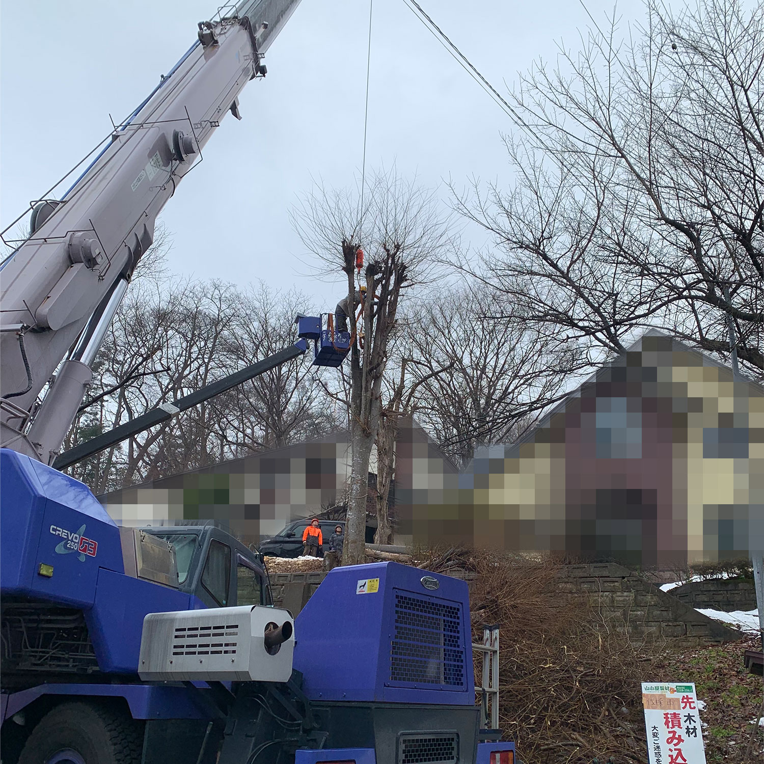 - 高所作業車連携伐採工事